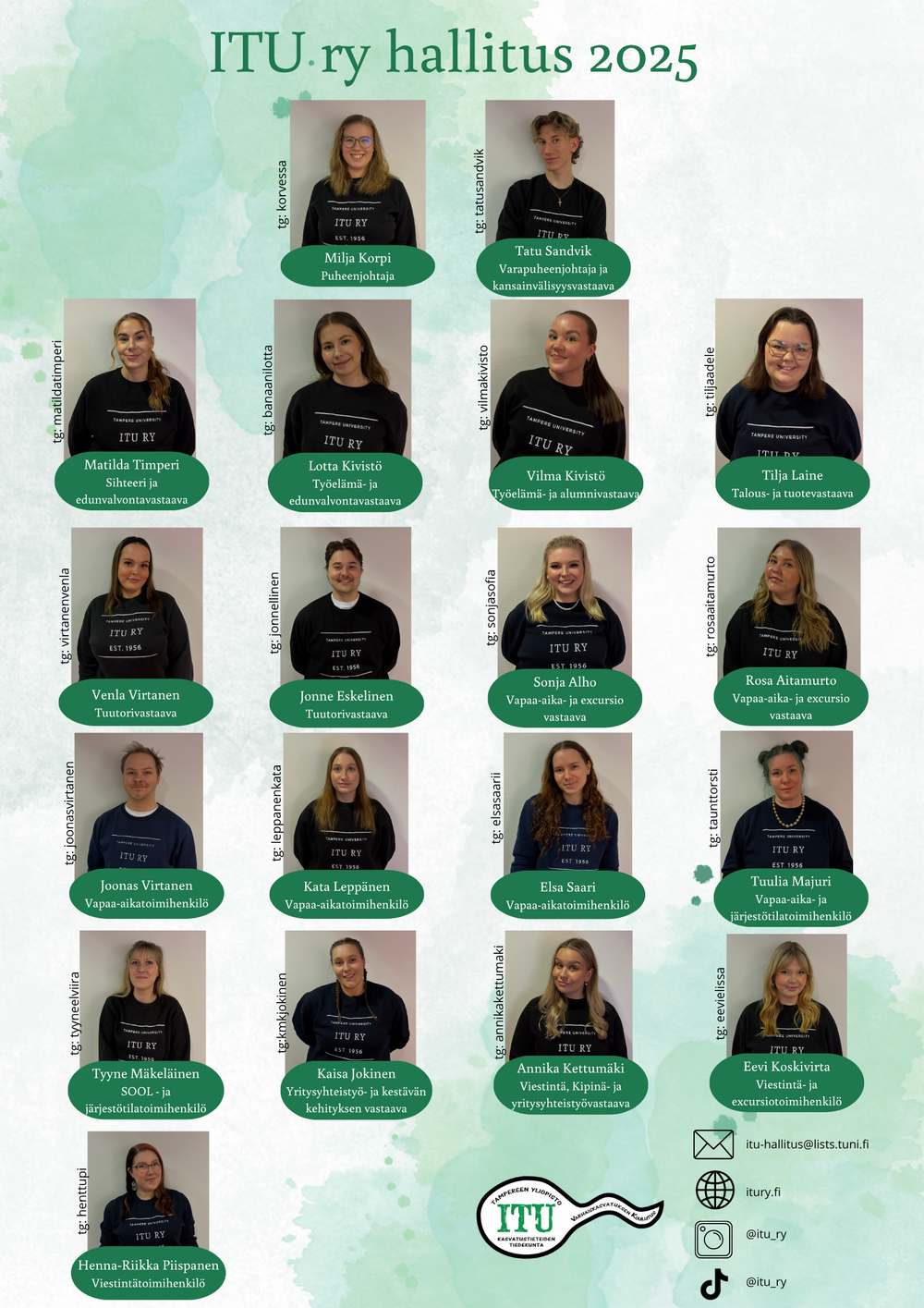 Täältä löydät ITUn 2025 hallituksen jäsenten nimet, pestit ja yhteystiedot (sähköposti ja telegram)